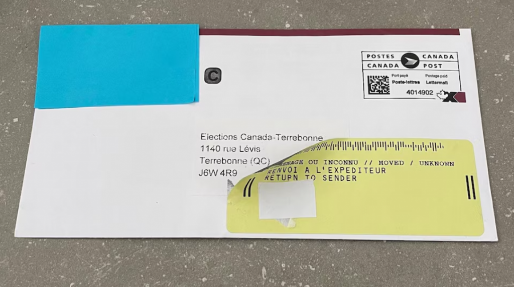 加拿大选举委员会表示,选票被退回,原因是因为打印在回邮信封上的邮政编码有误。