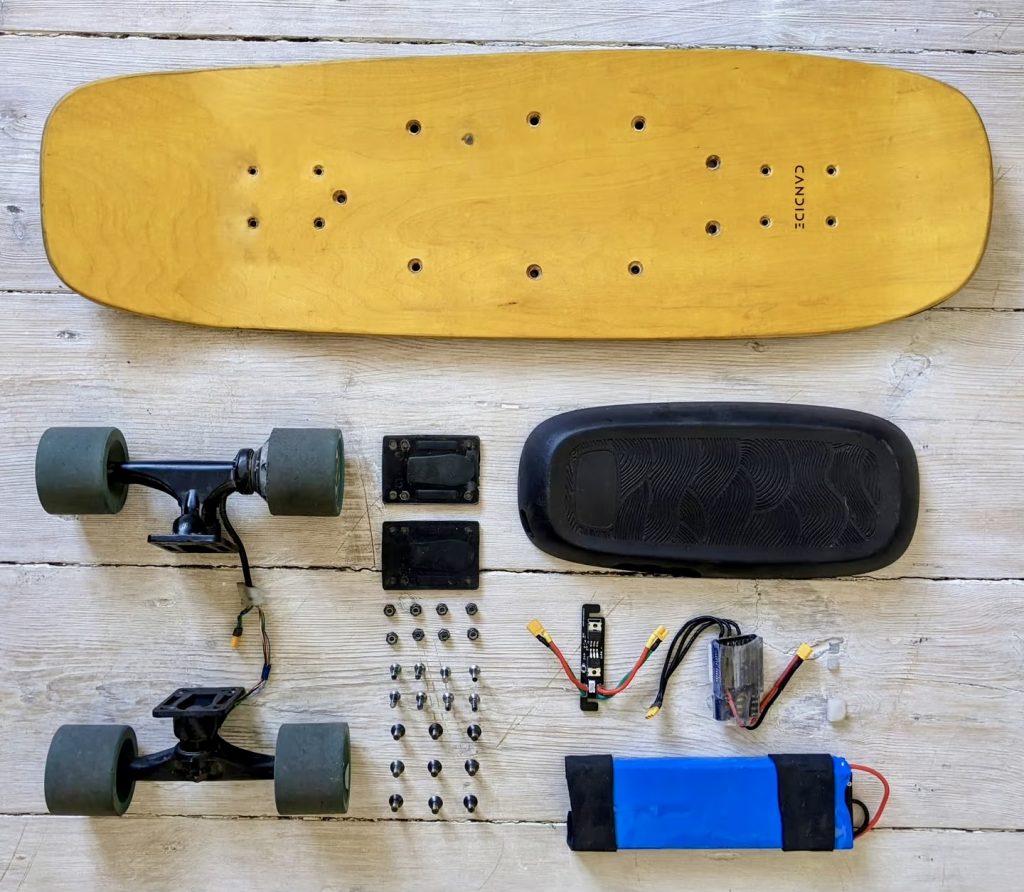 电机由可更换的 90瓦时三星锂离子电池驱动,据称每充电两小时可行驶10到12 公里(6 到 7.5 英里)。当电量下降时,电路板侧面的 LED 指示灯会从稳定的绿色变为闪烁的红色。