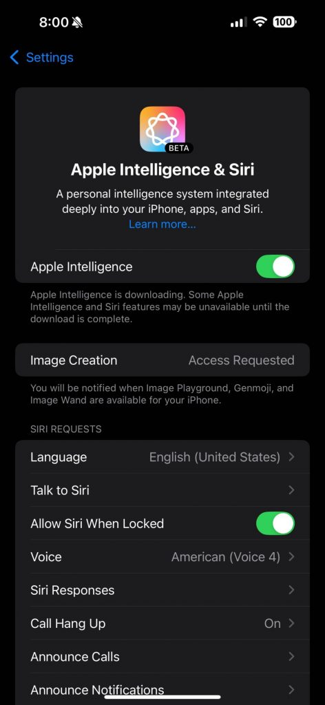 设定好地区及语言,接下来就可在设定开启Apple Intelligence。