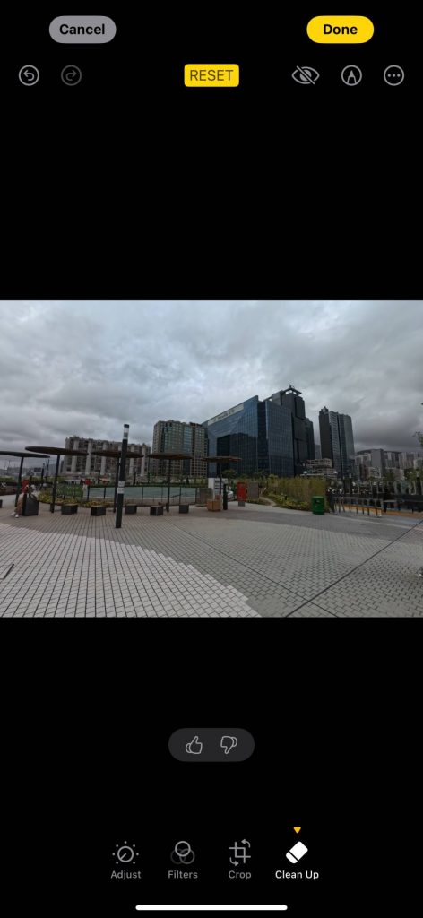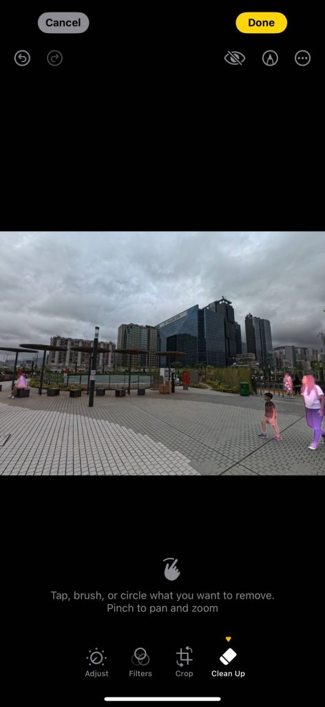 编辑相片时,想把碍眼的路人或物件移除,可利用新加入的Clean Up功能,自动分析影像及圈出可供消除的人或物,用户只需点选圈圈,即可将之移除。