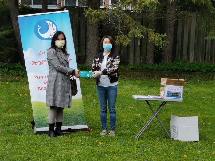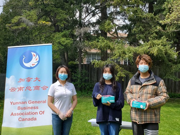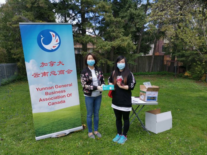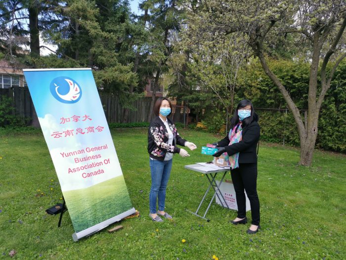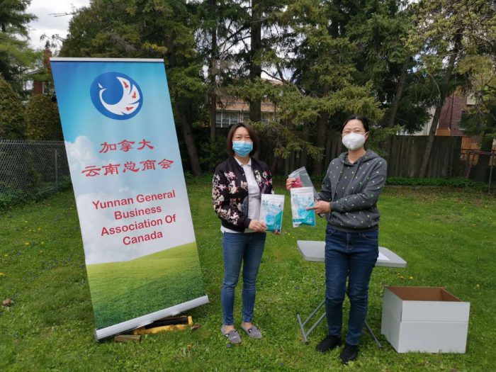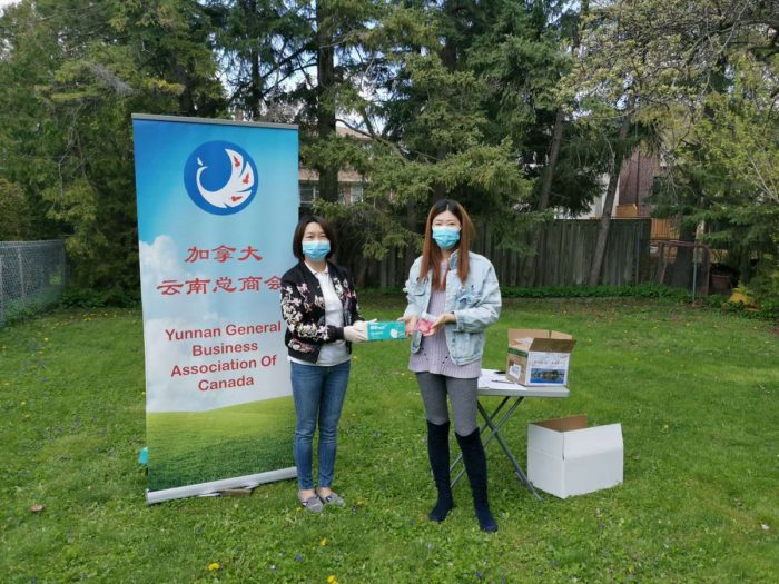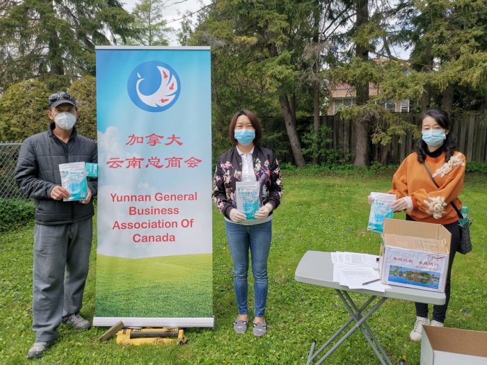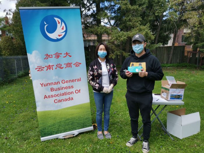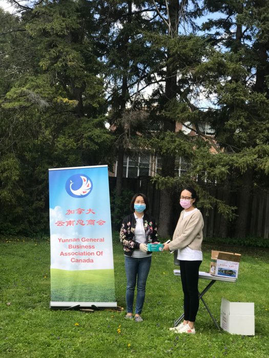5月16日,加拿大云南总商会在疫情持续笼罩中为云南籍的加拿大留学生和会员送去温情,免费发放医用物资。
