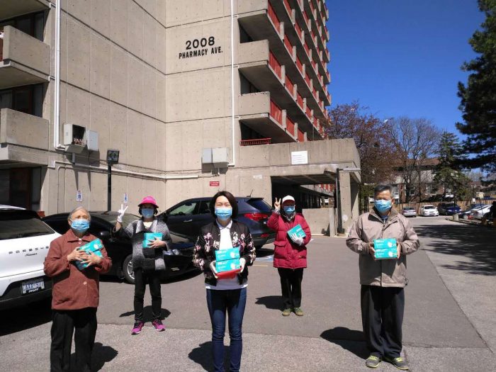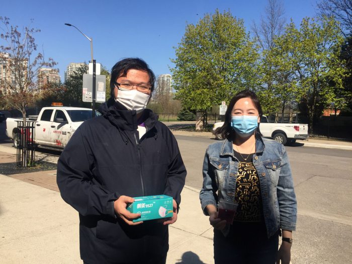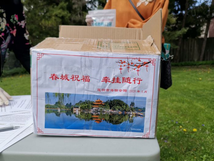 在派送现场,理事们积极响应政府的要求,彼此保持社交距离,同时在场人员不超过5位,并通知留学生和会员朋友们在不同时间段分批领取,秩序井然。对部分住在多伦多周边城市不方便领取物资的留学生,热心的云南总商会理事还不辞劳苦,专程送货上门。