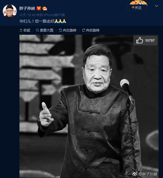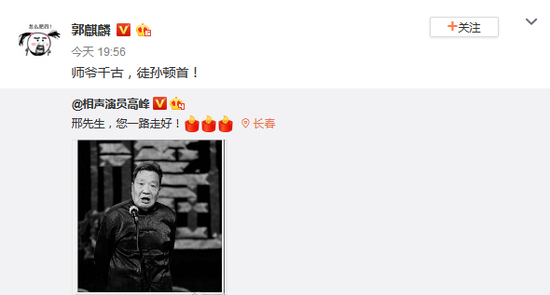 3月16日,据德云社相声演员高峰透露,德云社四老之一、相声演员邢文昭在北京病逝,享年82岁。随后,德云社孙越,郭麒麟等后辈也纷纷发微博吊唁。
