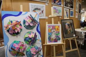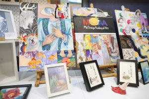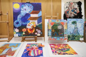 这次画展展示了从三岁到成人不同年龄段不同程度的艺术作品,涵盖绘画、陶艺,拼贴, 版画, 雕塑、摄影, 小型舞台设计等多种艺术形式。作品不仅展现了学生们观察力,想象力和情感表达能力,还展示了他们对艺术的独特理解。每一件作品都是学员们创造力的结晶,也是他们在当下各自年龄阶段中对生活的理解和诠释。