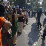 女子合力保护被警员毒打男子片段疯传 成印度抗争运动标志