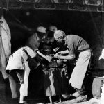 【图:参加中国抗日战争的加拿大白求恩大夫在给伤员做手术。】
