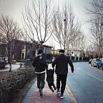 照片中孙莉与黄磊将儿子拎了起来,走在路上,三人穿着同色系的上衣,背影看起来都十分甜蜜幸福。