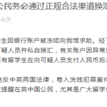 据领事直通车微信公众号消息,近期,数名中国留学生因银行账户被冻结向中国驻英国使馆求助。经了解,有关留学生均曾通过微信群、朋友圈结识可疑人员并私自换汇,有关账户因异常变动遭英方怀疑涉嫌洗钱而被冻结调查。此外,还有留学生在向可疑人员支付人民币后未收到英镑,蒙受经济损失。
