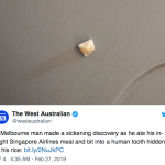 好噁心!男子飛機餐里吃出人牙齒