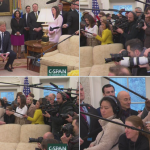 互致问候的开场白后,特朗普先向库尔茨伸出手去,随后两人握了握手。细心的媒体注意到,与以往长时间用力握住对方的手不同的是,这次特朗普并没用力,握手过程也只持续了短短的1秒钟。记者不禁问道:“特朗普的握手杀去哪儿了?”