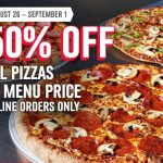 Domino's Pizza 现有超级优惠,网上订购 Pizza,所有Pizza均可享受50% OFF,按入官网,优惠至9月1日。