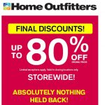 最后机会 ! Home Outfitters快将全线结业,货品大倾销,床上用品、家电、家俱、床褥、碗碟...一件不留,低至两折,立即行动!