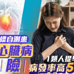 心脏病及中风均为香港人十大主要死因,死亡率分别排第3及第4。心血管疾病防不胜防?一项涉及9.6万人的研究指出,有5大指标可自测心血管健康,其中1类人在冠心病提早发病风险竟高达562%!60岁以下也要小心!
