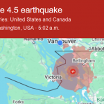 【星岛都市网】大温地区居民今(3日)日清晨感受到在两星期内第二次的有感地震,这次发生在美国华盛顿州近边境对开海域。加拿大地震局最初估计强度达4.8级,卑诗省紧急资讯中心估计4.6级,美国地震测量局(USGS)初步估计达4.5级。