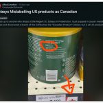 几名杂货店购物者在 Reddit 上分享了一些照片,照片显示一些商品在商店标牌上被标记为加拿大产品,但仔细一看,它们实际上是美国产品。