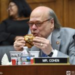 5月3日报道,当地时间年5月2日,美国华盛顿,美国司法部长巴尔2号缺席了众议院司法委员会,就特别检察官米勒通俄调查报告举行的听证会。众议员斯蒂夫-科恩(Steve Cohen)带炸鸡和一只陶瓷鸡对其进行讽刺。图为斯蒂夫-科恩(Steve Cohen)现场啃炸鸡。