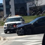 本网记者Claire图今日中午1时左右,万锦Apple Creek Blvd夹Town Center Blvd附近发生车祸,车头已经变形,现场一辆警车在场。大约1时50分左右,车辆被救援车拉走。暂不知道关于车祸原因。(Grace报道)