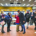 在周一大选获胜取得连任的总理杜鲁多,周二现身满地可地铁站,向市民谢票。